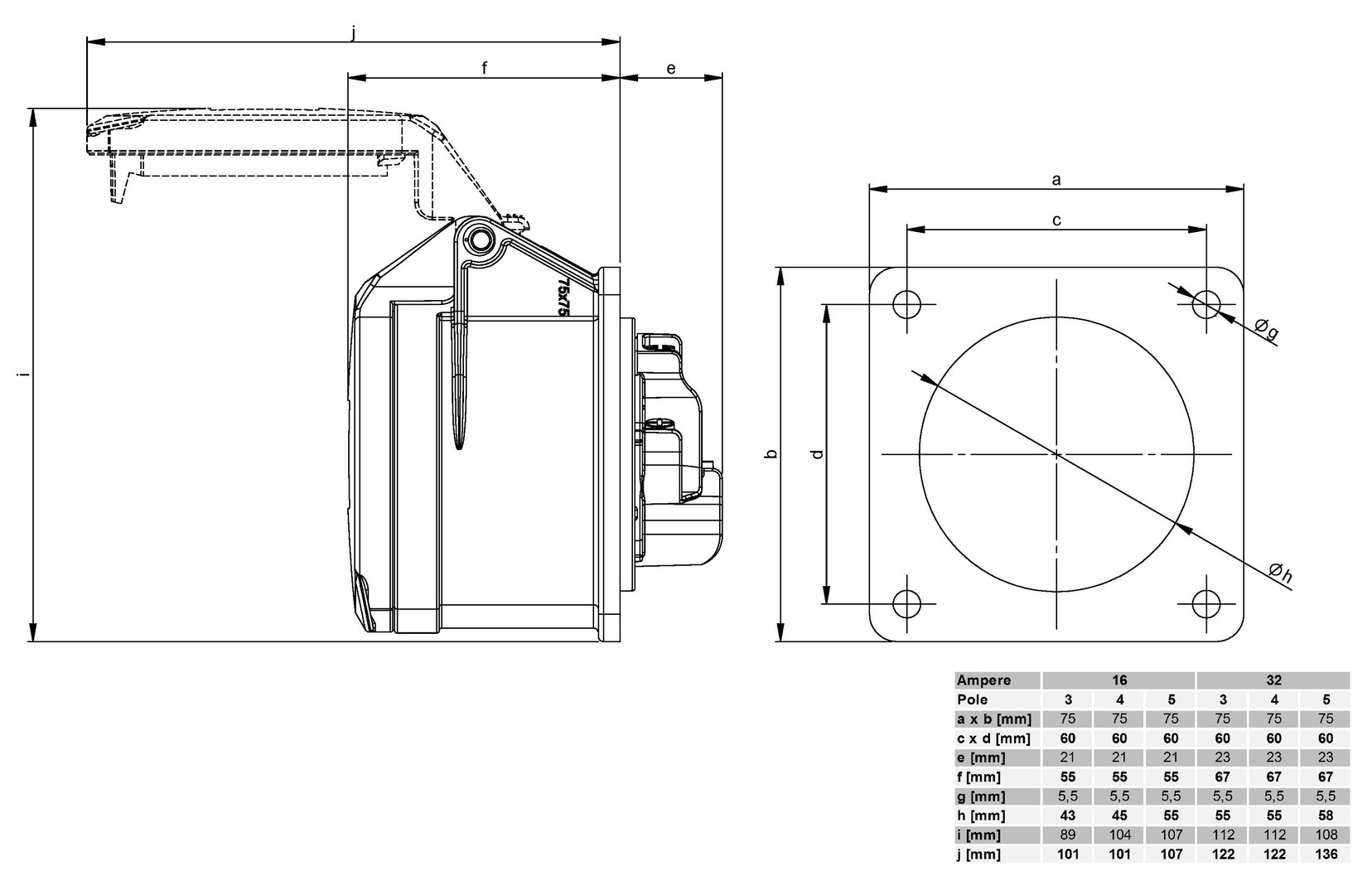 3P+N+G 277/480vac Female Receptacle IP44